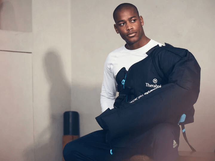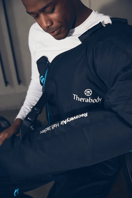 Presoterapia z użyciem sprzętu Therabody Recovery Air Pro i Half Jacket – 30 minutowe sesje. Poprawia krążenie krwi i limfy, zmniejsza ból oraz uczucie zmęczenia.